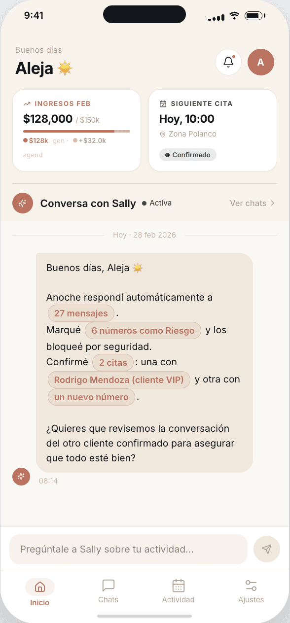 Disponibilidad, mensajes y pendientes en un solo lugar para que tu día no se desordene.